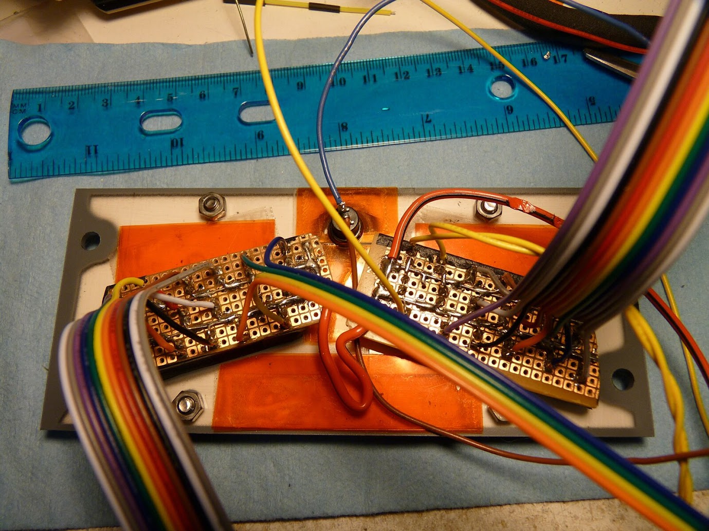All the wires are soldered from back side of indicator boards (which kind of goes against board design :) ). This is because I wanted to have front side completely flat *beside the indicators in order to install the rubber foam mask that blocks any light leaks from inside the overhead.